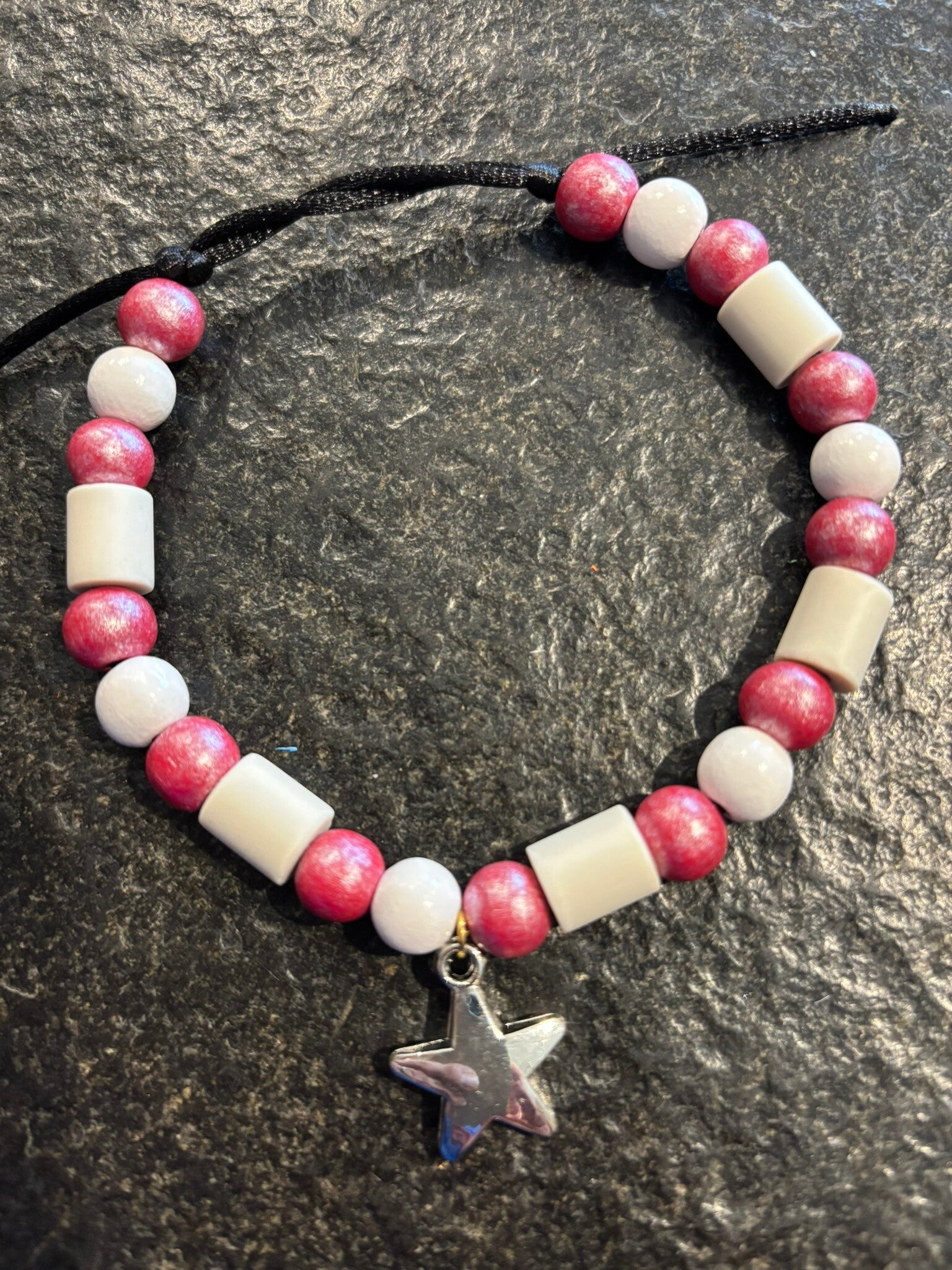 Hierdoor is deze verstelbaar en kan dus kan groter gemaakt worden. Door er kralen af te halen kan het halsbandje ook kleiner gemaakt worden.