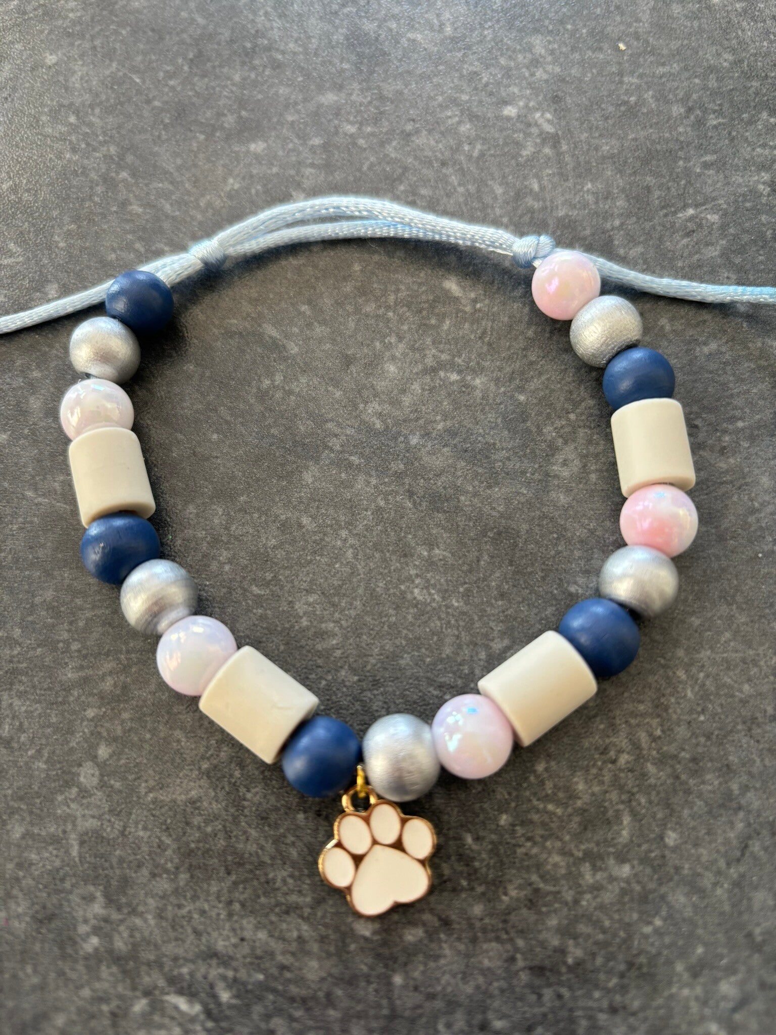 Hierdoor is deze verstelbaar en kan dus kan groter gemaakt worden. Door er kralen af te halen kan het halsbandje ook kleiner gemaakt worden.