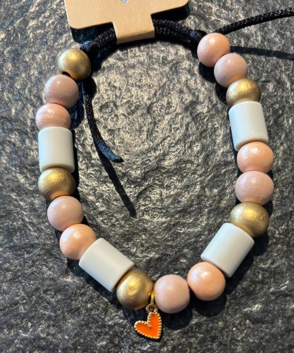 Keramische kralen halsband bruin met hart S